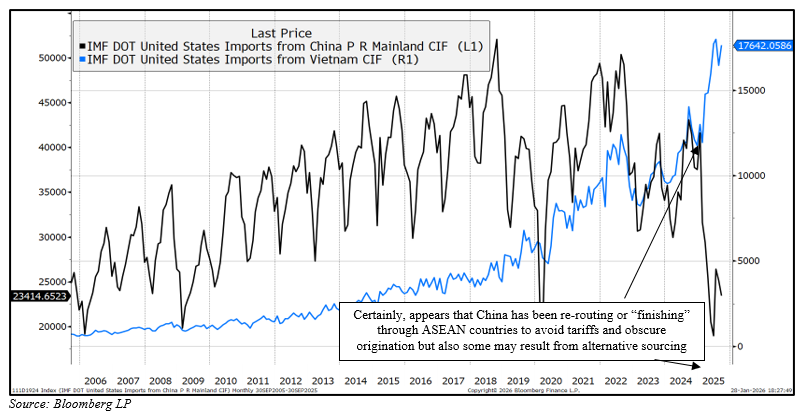 The outlook remains more challenging for China than during the first decade of the millennium. Many expect persistent disinflation, and growth remains dependent upon high external trade surplus. Continued push on exports to drive growth could lead to additional, periodic trade skirmishes. For example, Europe increasingly frames China as a “systemic competitor,” and Germany’s policy shift is emblematic. Risk assets geared to China’s domestic demand face a slow grind. It will be important to monitor the breadth of fiscal support to households, enforcement of anti‑overcapacity rules, and partners’ trade remedies to guide the outlook for China over the next year and beyond.
